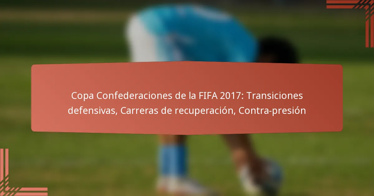 Durante la Copa Confederaciones de la FIFA 2017, las carreras de recuperación fueron cruciales para que los equipos recuperaran rápidamente su forma defensiva tras perder la posesión. Estas carreras permitieron a los jugadores minimizar los contraataques y mantener presión sobre los oponentes, impactando significativamente los resultados de los partidos.