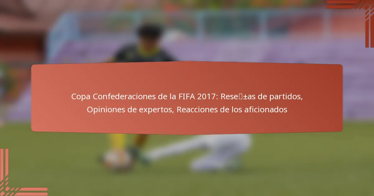 Las opiniones expertas sobre la Copa Confederaciones de la FIFA 2017 destacaron innovaciones estratégicas, actuaciones sobresalientes de jugadores y las implicaciones de los resultados de los partidos para futuros torneos. Los analistas proporcionaron información sobre tácticas de equipo y evaluaciones de jugadores, que pueden informar las expectativas para las próximas competiciones.
