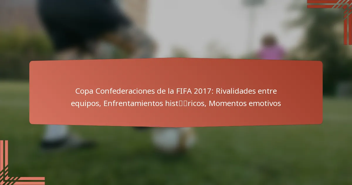 La Copa Confederaciones de la FIFA 2017 fue una emocionante exhibición de intensas rivalidades entre equipos, profundamente arraigadas en encuentros históricos y enfrentamientos previos en la Copa del Mundo. Naciones como Alemania, Chile y Australia se enfrentaron en choques memorables que no solo destacaron su espíritu competitivo, sino que también crearon momentos emocionales que resonaron tanto en aficionados como en jugadores.